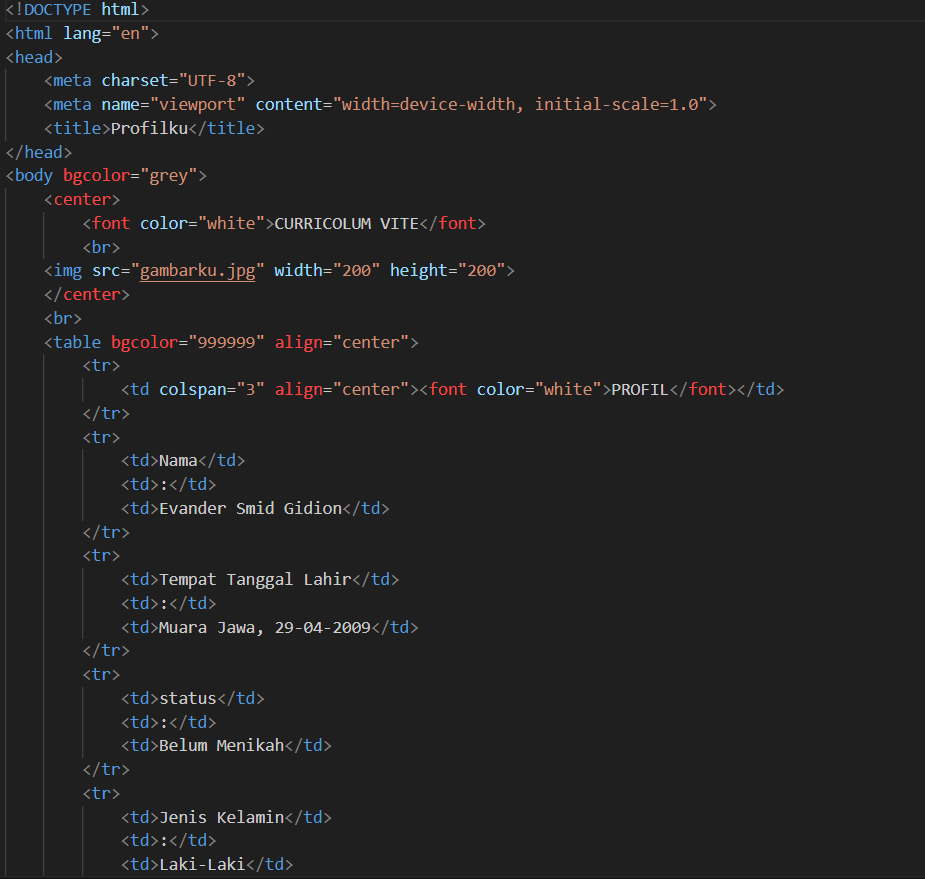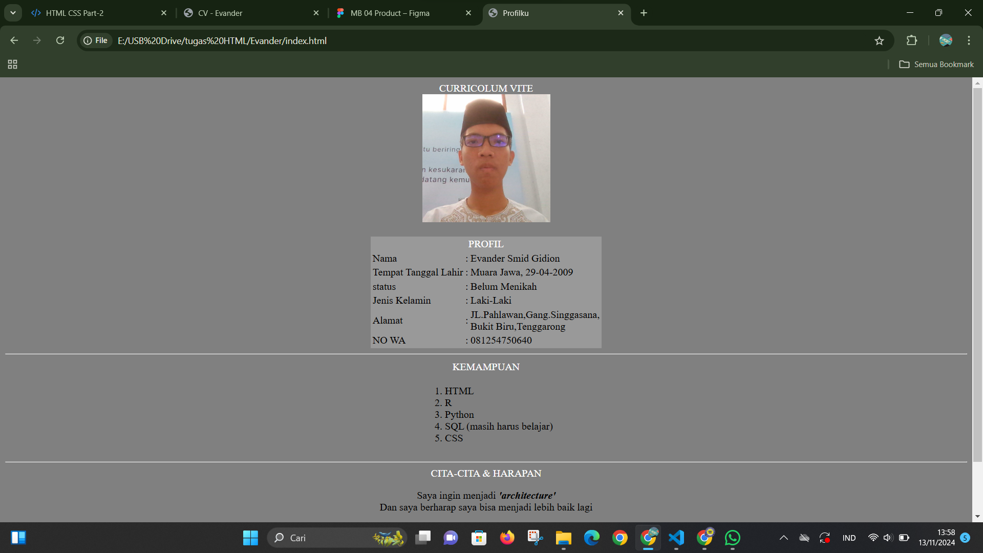 hasil dari codingan CV sederhana