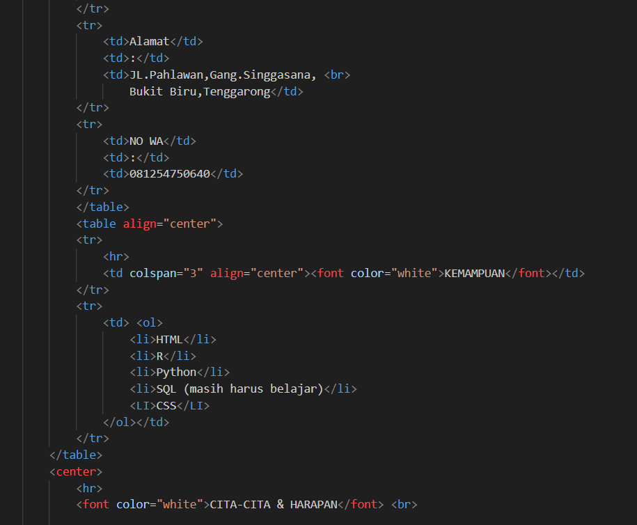 codingan tentang pembuatan CV sederhana